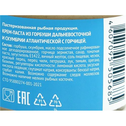 Крем-паста из горбуши и скумбрии с горчицей от АТЛАНТИКА – это невероятно нежный и вкусный продукт, который разнообразит ваше повседневное меню. Благодаря своей текстуре и насыщенному вкусу, крем-паста станет идеальным ингредиентом для приготовления аппетитных сэндвичей, бутербродов и холодных закусок.