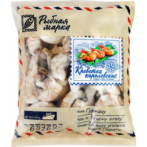 Креветки Королевские свежемороженые РЫБНАЯ МАРКА в панцире без головы, 800г в магазинах Лента