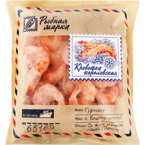 Креветки Королевские варено-мороженые РЫБНАЯ МАРКА с головой 50/70, 500г в магазинах Лента