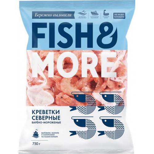 Креветки северные варено-мороженые FISH & MORE в панцире 80/100, 750г в магазинах Лента