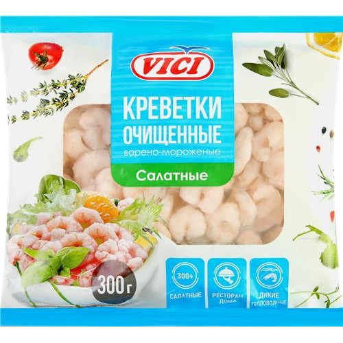 Креветки варено-мороженые VICI Салатные, очищенные, 300г в магазинах Лента
