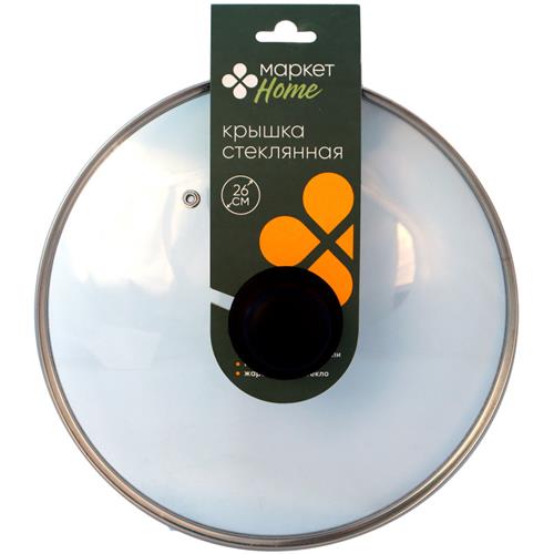 Крышка стеклянная 26см с металлическим ободом и ручкой из полипропилена Маркет Home в магазинах Перекресток