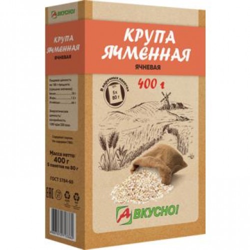 Крупа ячневая А ВКУСНО вар/пак, 5шт х 80г, 400г в магазинах Авоська