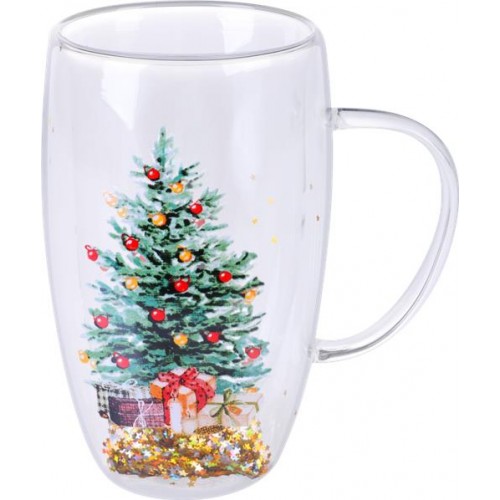 Кружка HOMECLUB Новогодняя, с двойной стенкой, стекло, 440мл, Арт. DWGB-3 в магазинах Лента
