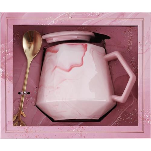 Кружка HOMECLUB Розовый мрамор с ложкой, 400мл, керамика, подарочная упаковка в магазинах Лента