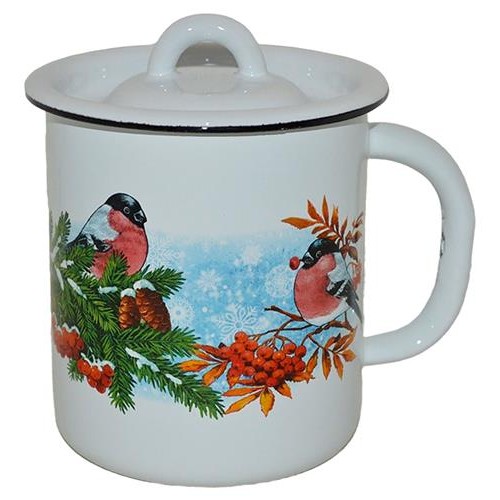 Кружка Стальэмаль Снегири эмалированная с крышкой, 1 л (kastd) в магазинах Ашан