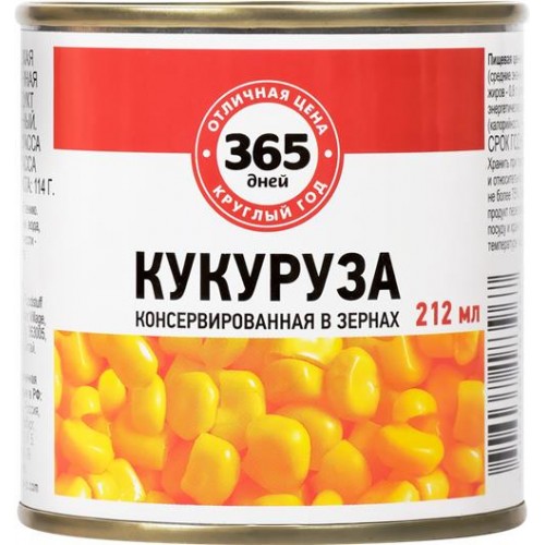 Кукуруза консервированная 365 ДНЕЙ в зернах, 212мл в магазинах Лента