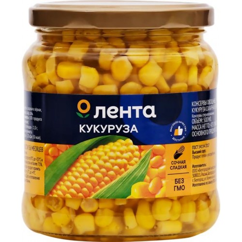 Кукуруза ЛЕНТА сахарная, 500мл в магазинах Лента