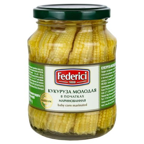 Кукуруза молодая Federici в початках маринованная, 370 мл (kastd) в магазинах Ашан