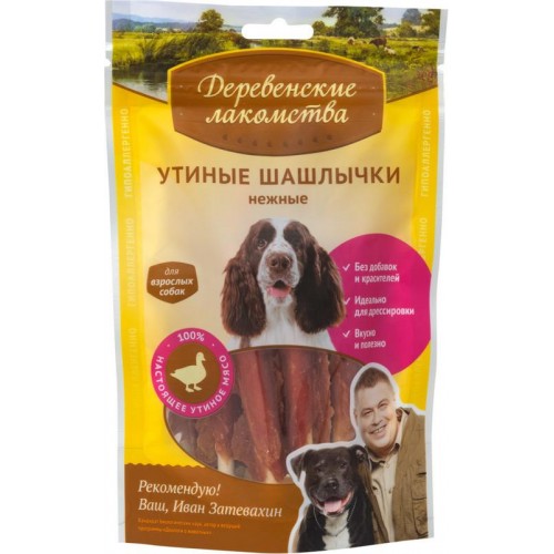 Лакомство Деревенские лакомства Шашлычки утиные нежные для собак, 90г в магазинах Перекресток