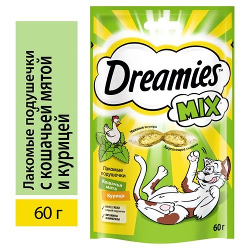 Лакомство для кошек Dreamies Mix подушечки с мятой и курицей, 60 г (kastd) в магазинах Ашан