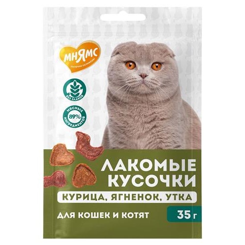 Лакомство для кошек и котят Мнямс Лакомые кусочки ассорти из курицы ягненка и утки, 35 г (kastd) в магазинах Ашан