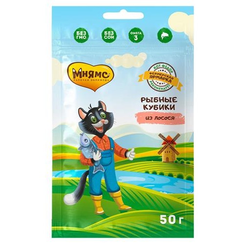 Лакомство для кошек Мнямс Кот Федор Рыбные кубики из лосося, 50 г (kastd) в магазинах Ашан