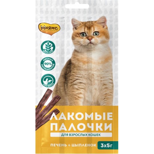 Лакомство для кошек МНЯМС Лакомые палочки с цыпленком и печенью 13,5см, 15г в магазинах Лента