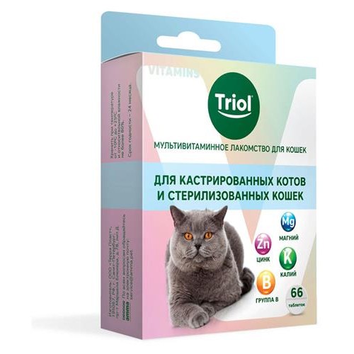Лакомство для котов кастрированных и стерилизованных кошек Triol мультивитаминное, 33 г (kastd) в магазинах Ашан