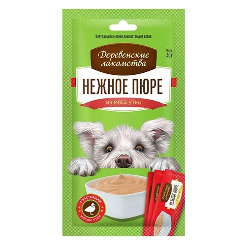 Лакомство для собак Деревенские лакомства Нежное пюре из мяса утки, 4х10 г (kastd) в магазинах Ашан