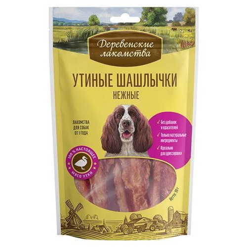 Лакомство для собак Деревенские лакомства утиные шашлычки, 90 г (kastd) в магазинах Ашан