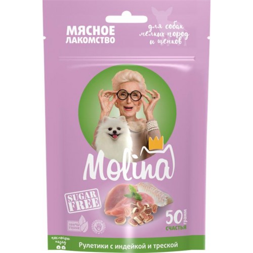 Лакомство для собак MOLINA Рулетики с индейкой и треской, 50г в магазинах Лента