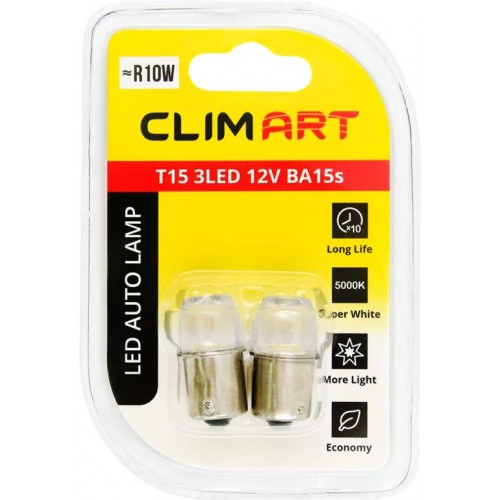 Лампа автомобильная светодиодная CLIM ART T15 3LED 12V BA15s R10W/к-т, 2шт в магазинах Лента