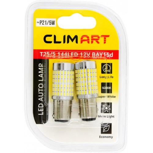 Лампа автомобильная светодиодная CLIM ART T25/5 144LED 12V BAY15d P21/5W/к-т, 2шт в магазинах Лента