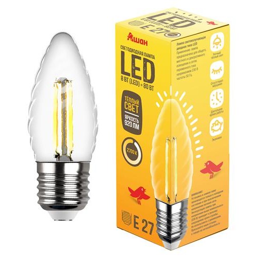 Лампа филаментная АШАН Красная птица Свеча на ветру Е27 теплый свет, 8 Вт (kastd) в магазинах Ашан