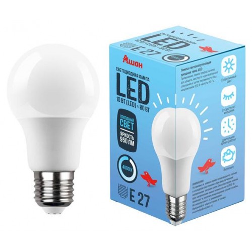 Лампа светодиодная АШАН Красная птица Груша Е27 холодный свет, 10 Вт (kastd) в магазинах Ашан