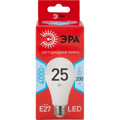 Лампа светодиодная ЭРА RED LINE LED A65, E27, 25Вт, груша, нейтральный белый свет Арт. Б0048010 в магазинах Лента