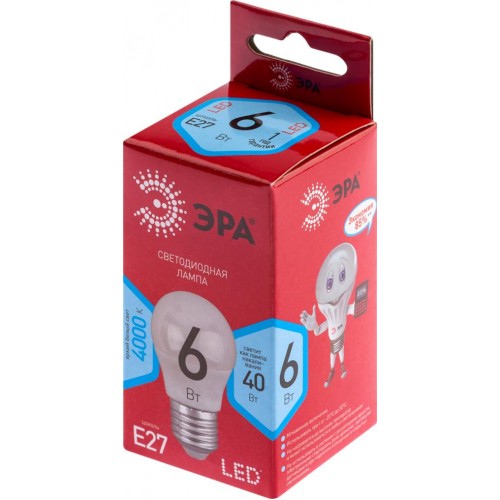 Лампа светодиодная ЭРА Red line LED P45, 6Вт, E27, шар нейтральный белый свет Арт. Б0049644 в магазинах Лента