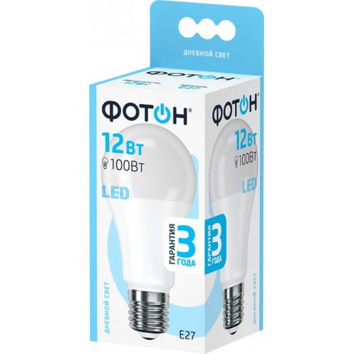 Лампа светодиодная ФОТОН 12Вт E27, холодный свет, груша в магазинах Лента