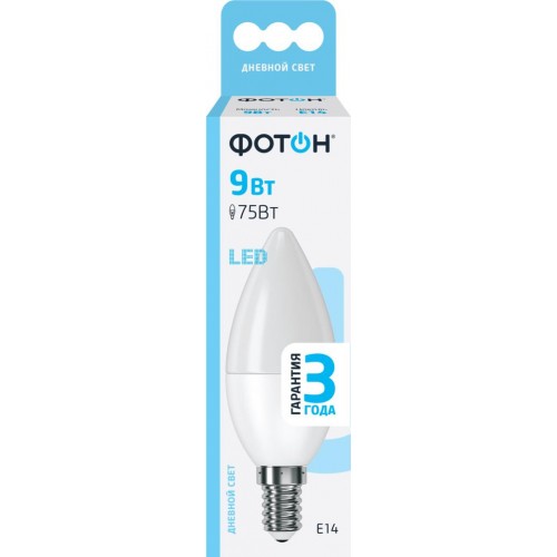 Лампа светодиодная ФОТОН E14 9Вт, холодный свет, свеча в магазинах Лента