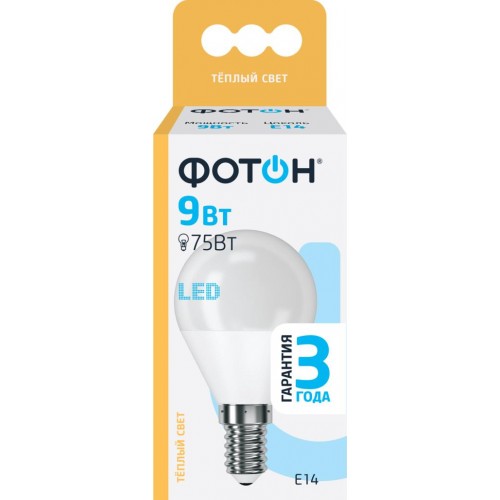 Лампа светодиодная ФОТОН E14 9Вт, теплый свет, шар в магазинах Лента