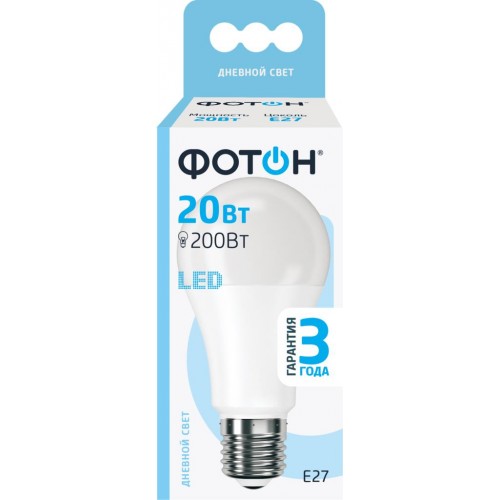 Лампа светодиодная ФОТОН E27 20Вт, холодный свет, груша в магазинах Лента