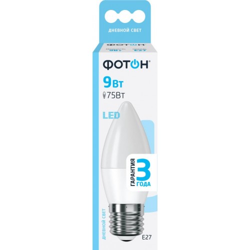 Лампа светодиодная ФОТОН E27 9Вт, холодный свет, свеча в магазинах Лента