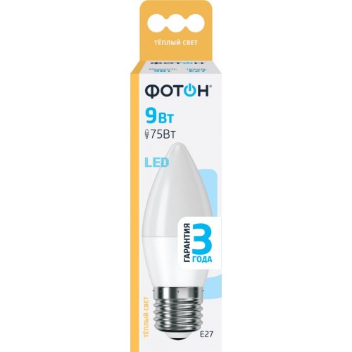 Лампа светодиодная ФОТОН E27 9Вт, теплый свет, свеча в магазинах Лента