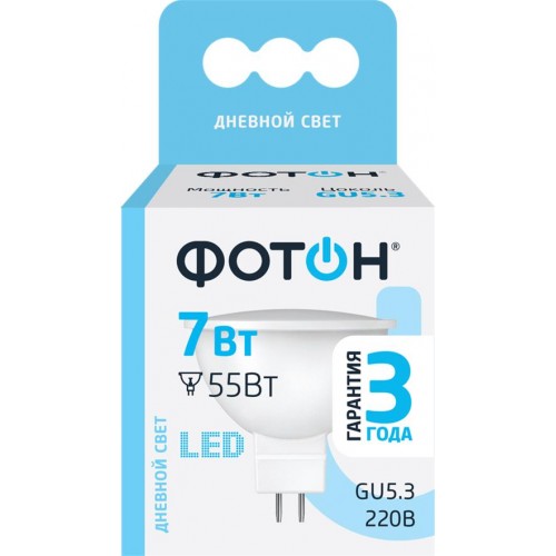 Лампа светодиодная ФОТОН GU5.3 7Вт MR16, холодный свет в магазинах Лента