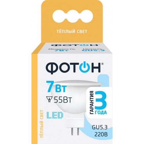 Лампа светодиодная ФОТОН GU5.3 7Вт MR16, теплый свет в магазинах Лента