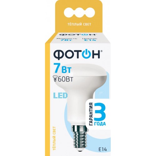Лампа светодиодная ФОТОН R50 7Вт E14, теплый свет в магазинах Лента