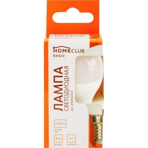 Лампа светодиодная HOMECLUB G45 5, E14, 5/7Вт 2700К Арт. LEDG4561427 в магазинах Лента