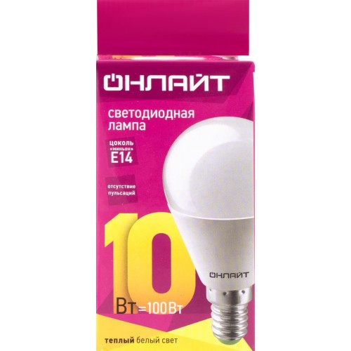 Лампа светодиодная ОНЛАЙТ 10Вт Е14, теплый свет, шар в магазинах Лента