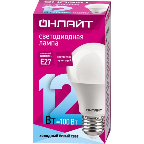 Лампа светодиодная ОНЛАЙТ 12Вт Е27, холодный свет, груша Арт. 71655 в магазинах Лента