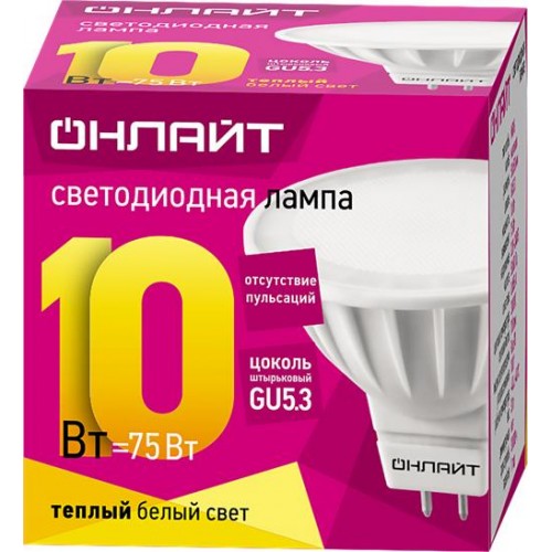 Лампа светодиодная ОНЛАЙТ GU5.3 10Вт MR16, теплый свет Арт. 61889 в магазинах Лента