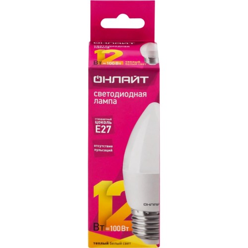 Лампа светодиодная ОНЛАЙТ LED 12Вт, 2700К, Е27, свеча Арт. 90057 в магазинах Лента