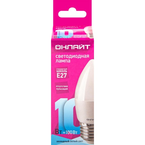 Лампа светодиодная ОНЛАЙТ Свеча 10Вт, E27, холодный в магазинах Лента