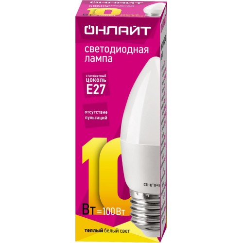 Лампа светодиодная ОНЛАЙТ Свеча 10Вт, E27, теплый в магазинах Лента