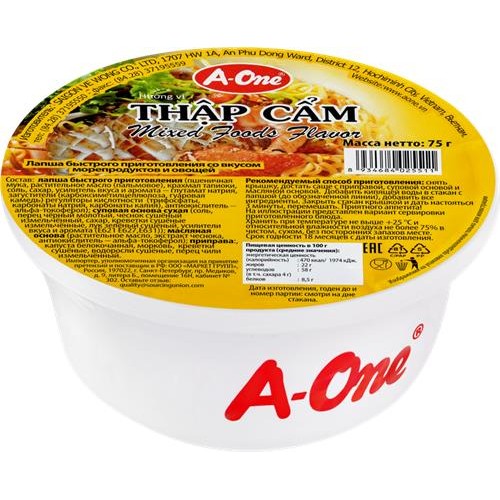 Лапша A-ONE со вкусом морепродуктов и овощей, 75г в магазинах Лента