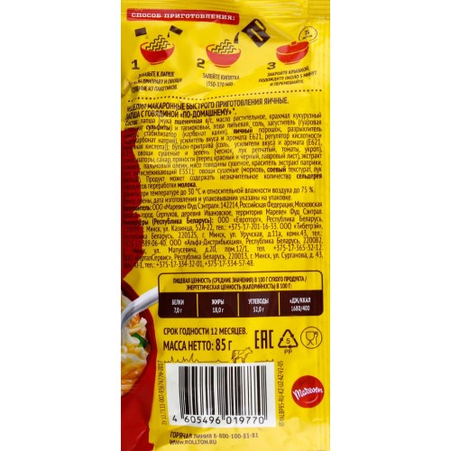Лапша РОЛЛТОН с говядиной По-домашнему, 85г в магазинах Лента