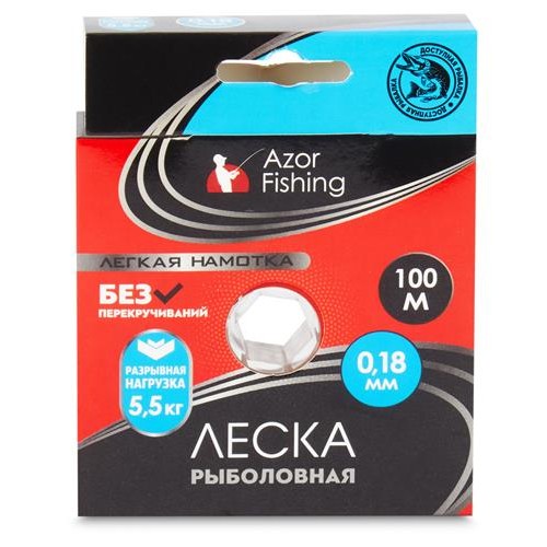 Леска Azor Fishing Легкая намотка 0,18 мм, 100 м (kastd) в магазинах Ашан
