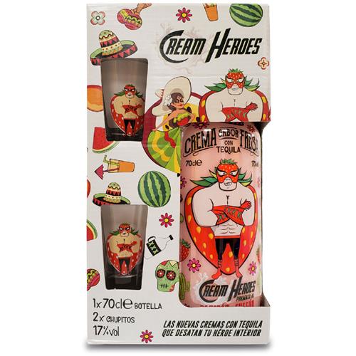 Ликер Cream Heroes Capitan Fresоn с ароматом клубники в подарочной упаковке 2 cтакана Шот, 700мл в магазинах Перекресток