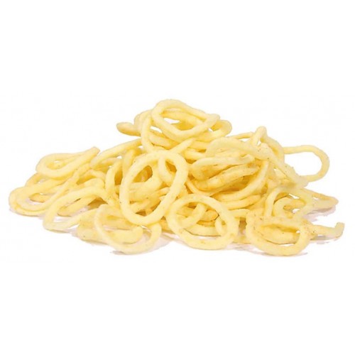 Полуфабрикат сухой картофельный экструзионной технологии (мука пшеничная в/с, крахмал картофельный, крахмал пшеничный, картофельные хлопья (картофель свежий, эмульгатор: моно- и диглицериды жирных кислот; стабилизатор Е450 (i), регулятор кислотности: лимонная кислота; антиокислитель (Е304), краситель: куркумин); мука кукурузная, соль, луковый порошок, масло растительное (содержит антиокислитель Е319), куркума порошок); масло растительное (содержит антиокислитель Е319); ароматизатор "Сметана" (соль, глюкоза, мальтодекстрин, усилители вкуса и аромата (Е621, Е627, Е631), лук порошок, сырный порошок, натуральные вкусоароматические вещества, вкусоароматические вещества, регулятор кислотности (лимонная кислота), красители (куркумин, экстракт паприки), жир растительный, агент антислеживающий (диоксид кремния аморфный)). Возможно наличие следов ракообразных, рыбы, сельдерея, горчицы, сои, аспартама, диоксида серы.