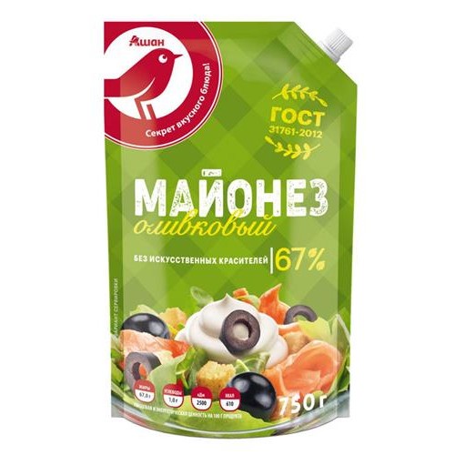 Майонез АШАН Красная птица Оливковый 67%, 750 мл (kastd) в магазинах Ашан